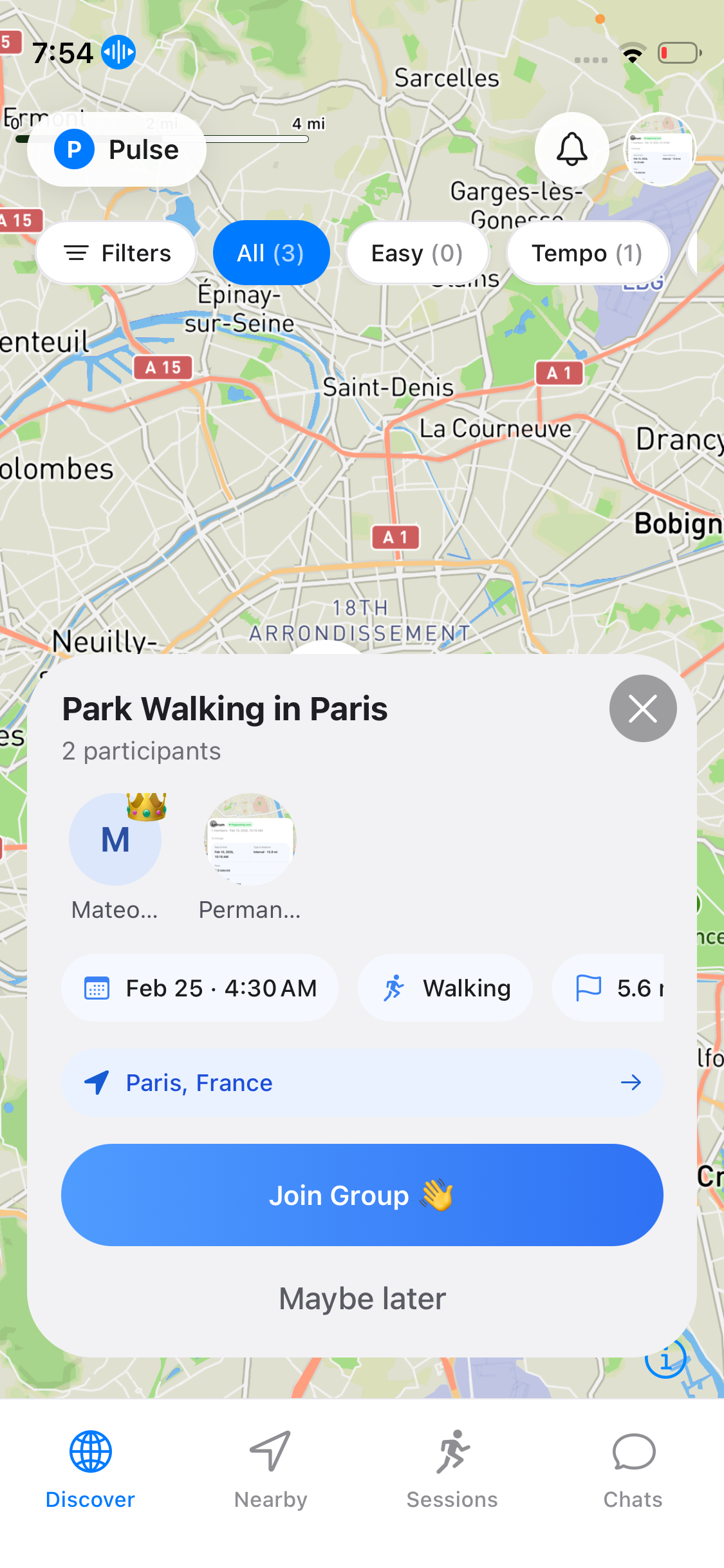 Tap join, connect with the group in the session chat, and show up at the meeting point. It's that simple.